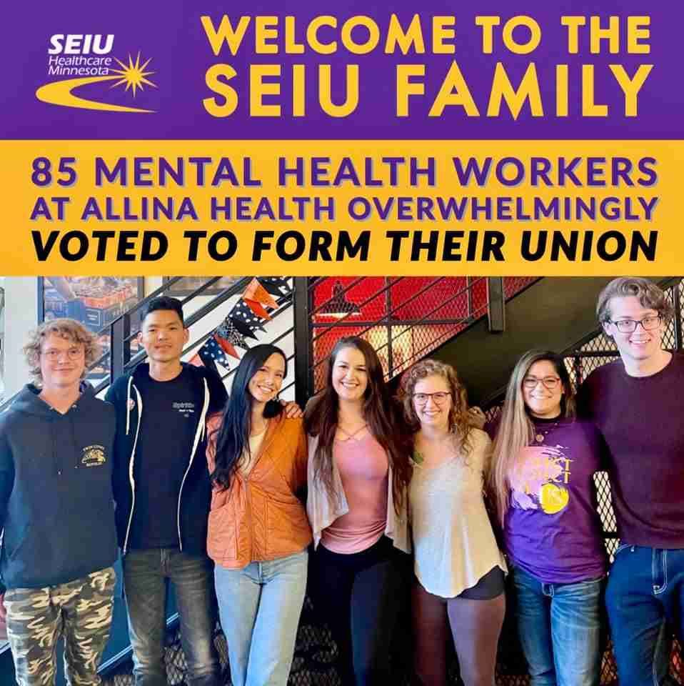 The wave of organizing looks to be continuing, with two more groups of mental health workers at M-Health Fairview and Allina hospitals recently filing petitions to join SEIU Healthcare Minnesota.