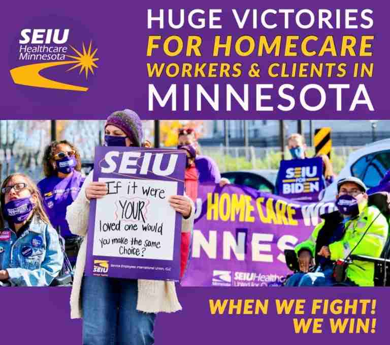 The contract agreement was reached between members of SEIU Healthcare Minnesota and the State of Minnesota in January and will bring in over $350 million in additional state and federal funding over the next four years for services for seniors and people with disabilities. The contract, the fourth between the state and the statewide home care workers’ union, includes gains such as a $15.25 minimum wage for all home care workers beginning July 1, 2022.