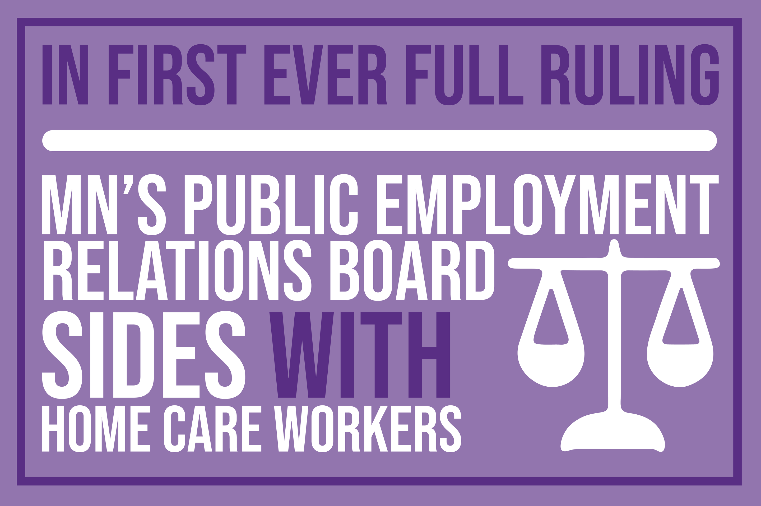 “This ruling is an important victory for thousands of home care workers all across the state, who proved just how essential their work is when they continued going into their clients’ homes every day to provide needed care even during the worst days of the pandemic. State lawmakers recognized that heroic service and tried to express appreciation to home care workers in the form of a modest, temporary pay increase. But many workers got none of it. Now that the PERB has ruled, we look forward to bargaining with the State to make sure full back pay is awarded to every home care worker to whom it is owed. This victory for home care workers in the PERB’s first full ruling also shows just how important it is for our State to have a functioning, funded PERB. Prior to the PERB’s existence, the only way to address this sort of issue would have been through costly, lengthy, contentious litigation. The PERB provides a much more efficient and respectful way for workers’ and public-sector employers’ voices to be heard, and for reasonable decisions to be reached on questions that matter to Minnesotans.”