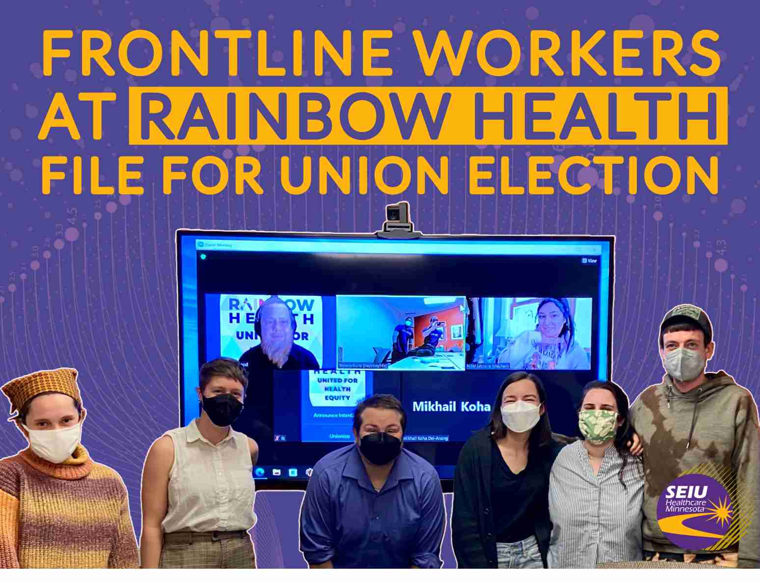 Saint Paul (Feb. 21) – Workers at Rainbow Health, an AIDS Service Organization in the Twin Cities and greater Minnesota that works with Minnesotans living with HIV, announced that they secured majority support to form their union and join SEIU Healthcare Minnesota. The workers delivered a letter asking for voluntary recognition to their CEO and Board of Directors, who refused to take that step, meaning the workers will hold a National Labor Relations Board (NLRB) election vote early next month.