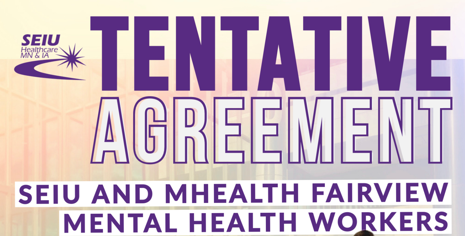 MINNEAPOLIS – After a marathon 12-hour bargaining session that ended at 10 p.m. Monday evening, the 350 mental health workers at MHealth Fairview who are members of SEIU Healthcare Minnesota & Iowa announced a tentative agreement on a first union contract.